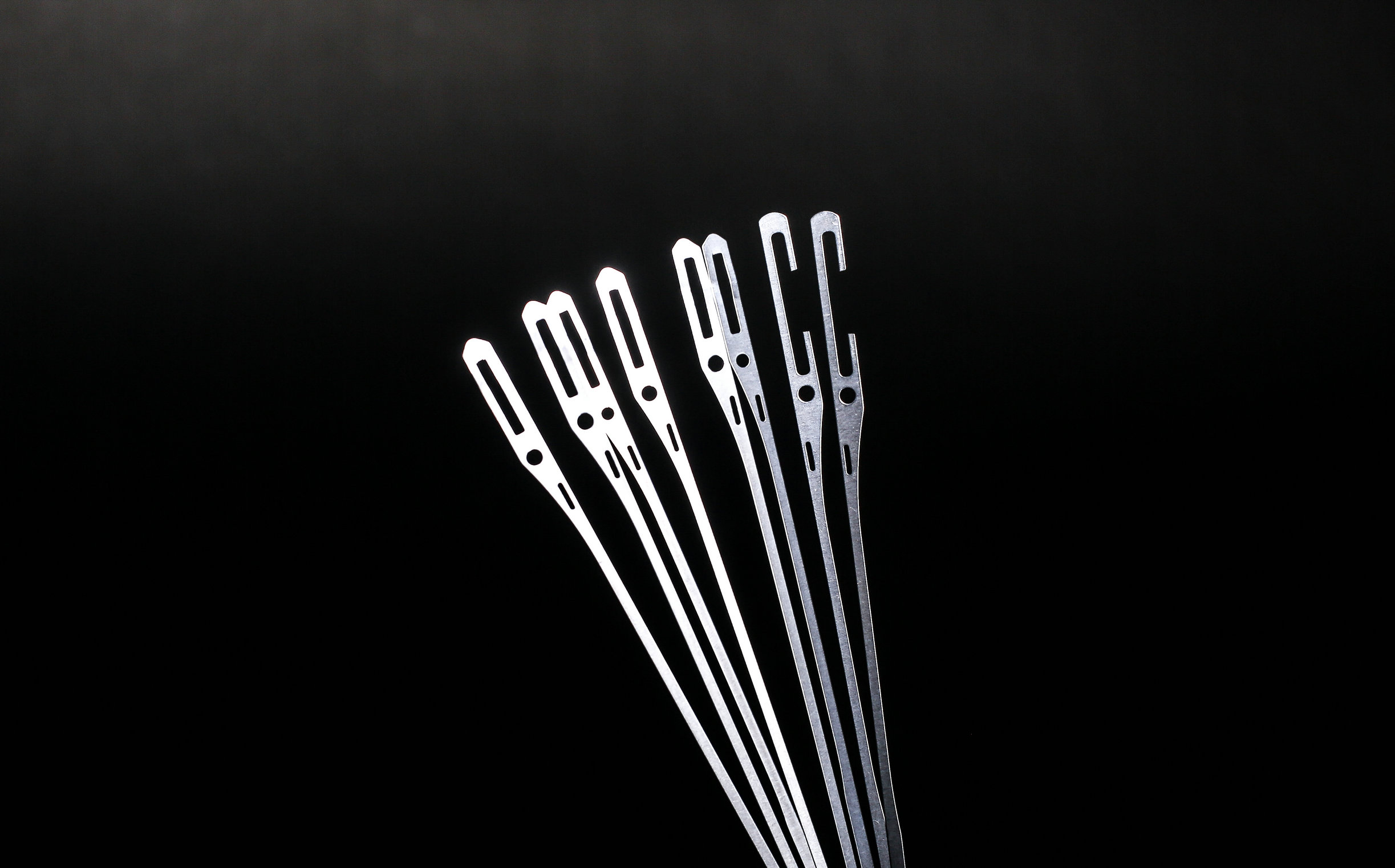 綜絲生產車間使用高精密度的耐磨型420J2不銹鋼材料,經高溫熱處理,通過自主研發(fā)的特殊生產工藝及先進的全自動生產線,生產各種規(guī)格的不銹鋼綜絲(260、280、302、330、331)及停經片(145、165、180開口、閉口)。產品具有韌性好、 防銹程度高、耐磨性強、使用壽命長等特點,先進的倒角技術使我們的綜絲綜眼更加光滑耐磨,公司所有綜絲產品均通過法國史陶比爾和日本藤堂自動穿綜機測試!